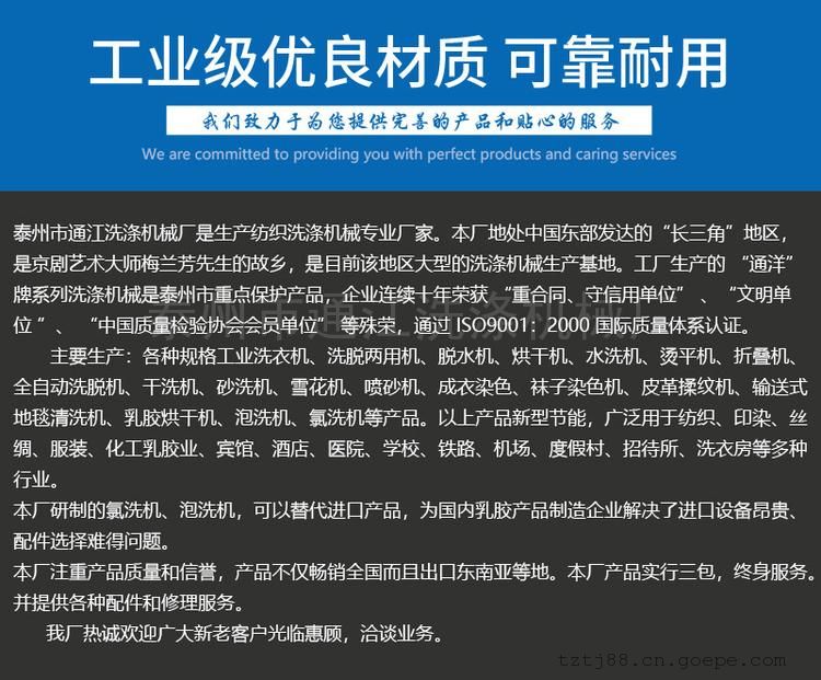 品牌:通洋 型号:GX-150 加工定制:是 外形尺寸:2500*1400*1700 功率:4kw 机幅:1650 mm 内筒直径:1060mm 内筒长度:1650mm 材质:304不锈钢 加热方式:蒸汽 控制方式:全自动 通洋针织服装面料起绒机水洗机GX-150,性能特点